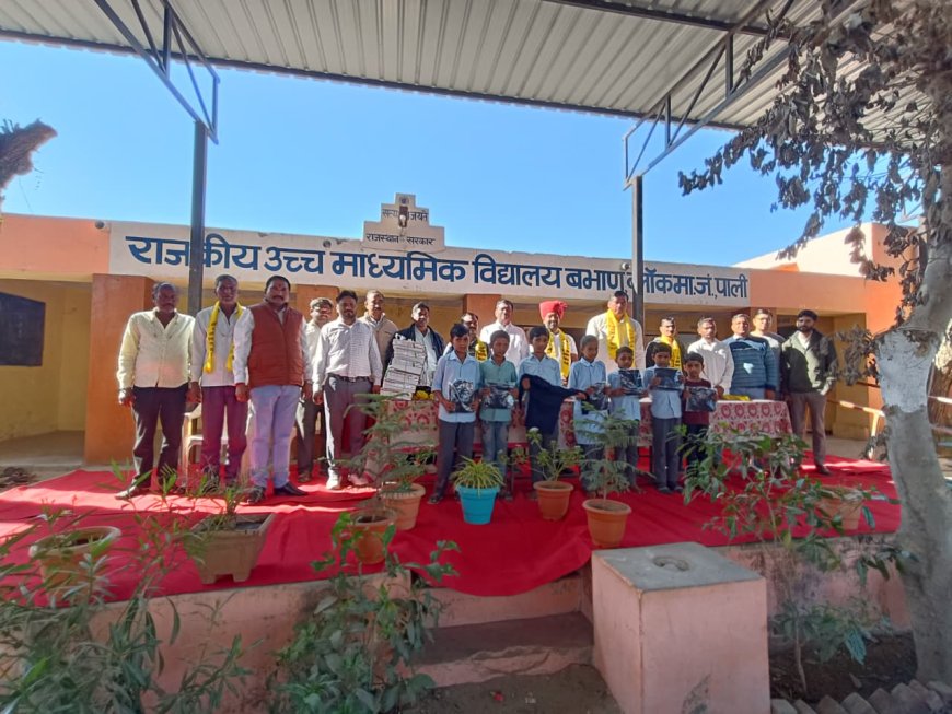 सोजत बभाण राजकीय उच्च माध्यमिक विद्यालय बभाण में शुक्रवार को भामाशाह रोशनलाल नाहर (तेरापंथ संघ परिषद, पाली) द्वारा सर्दी के मौसम को देखते हुए कक्षा पहली से पांचवीं तक के विद्यार्थियों को स्वेटर वितरण कार्यक्रम आयोजित किया गया। नाहर ने बच्चों को अपने हाथों से स्वेटर पहनाकर उनकी हौसलाअफजाई की।विद्यालय के प्रधानाचार्य महेंद्र सिंह रावत ने बताया कि पाली से पहुंचे रोशनलाल नाहर ने बभाण विद्यालय के साथ-साथ समीप स्थित राजकीय प्राथमिक विद्यालय रामाजी के वाडिया के बच्चों को भी स्वेटर भेंट किए। प्रधानाचार्य रावत ने कहा कि नाहर का यह सहयोग ग्रामीण क्षेत्र के बच्चों के लिए प्रेरणादायक है।कार्यक्रम को संबोधित करते हुए रोशनलाल नाहर ने कहा कि पाली जिले के अंतिम छोर पर स्थित इस विद्यालय में किसी भी प्रकार की भौतिक सुविधाओं की कमी नहीं रहने दी जाएगी। उन्होंने सभी भामाशाहों से विद्यालय विकास में योगदान देने का आग्रह किया। नाहर ने विद्यालय के पिछले चार वर्षों से बोर्ड परीक्षा परिणाम शत-प्रतिशत रहने पर प्रधानाचार्य रावत और शिक्षक दल की प्रशंसा भी की। साथ ही बच्चों को ब्लेजर में अनुशासित रूप से देखकर प्रसन्नता व्यक्त की।कार्यक्रम में पूर्व सरपंच मनोहर सिंह, प्रधानाचार्य महेंद्र सिंह रावत, अविनाश चौहान, भगवानसिंह मेवड़ा, बाबूसिंह, नीमसिंह, वरिष्ठ अध्यापक तेजसिंह जेतावत, अमरचंद सामरिया, पियूष भटनागर, शारीरिक शिक्षक ओमप्रकाश गुर्जर, भरत वैष्णव, इंद्रसिंह रावत, विकास यादव, कनिष्ठ लिपिक सीताराम जाट सहित शिक्षक व ग्रामीण मौजूद रहे।